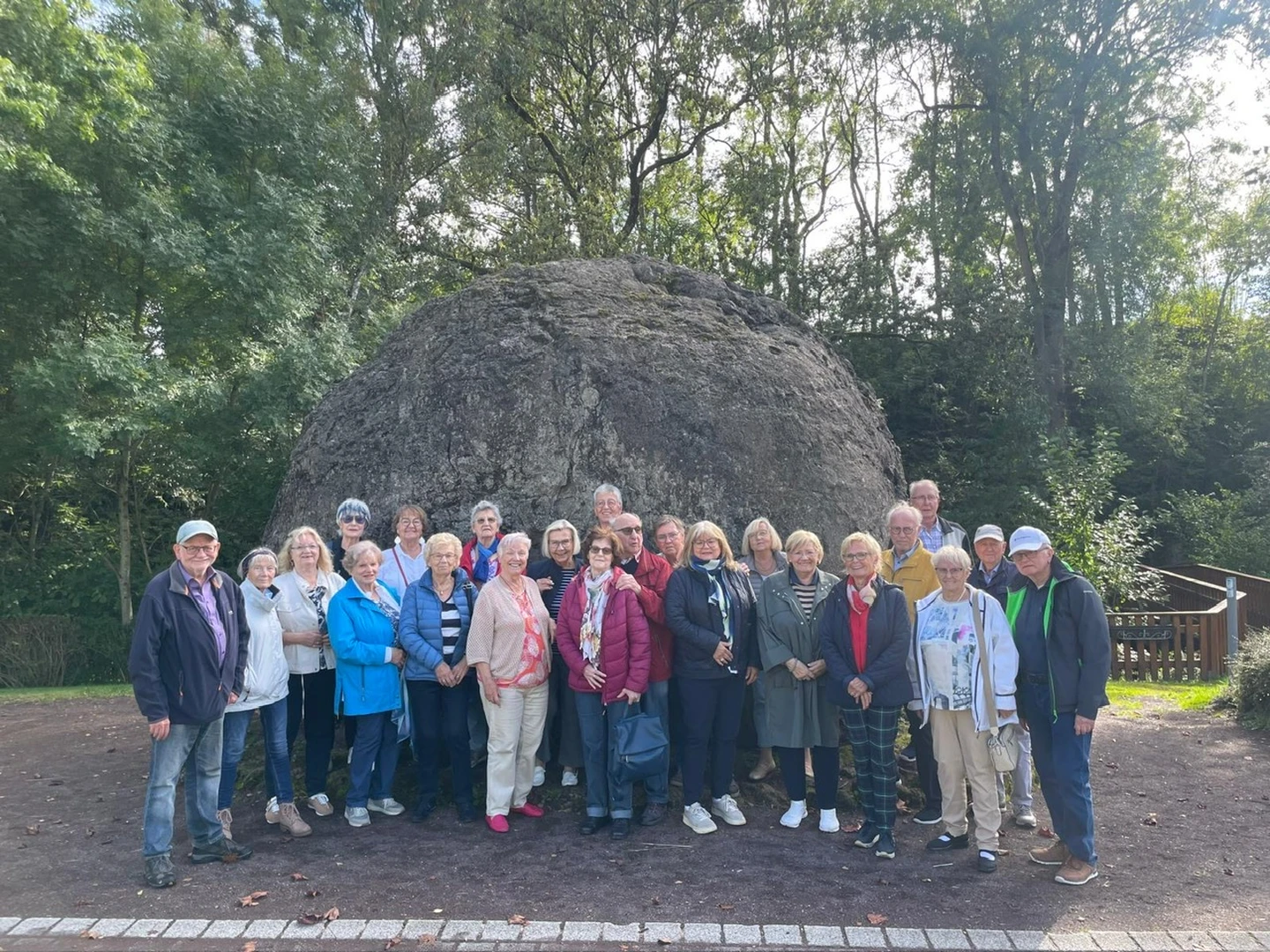 Die friedliche Landschaft lässt heute kaum noch erkennen, welch ungeheure Kräfte vor mehr als 10.000 Jahren im Fall des Schalkenmehrener Maares und vor 30.000 Jahren bei der Entstehung des Weinfelder Maares jeweils bei Dampfexplosionen us dem Boden gebrochen sind. Spuren solcher Ereignisse Finden sich allerdings beim Ort Strohn, wo so genannte Lavabomben an die Wucht der Vulkanausbrüche erinnern. Der Ausflug mit einem herausfordernden Spaziergang übers Gelände endete schließlich wieder in Gillenfeld, wo sich die Freunde der Eintracht mit Kaffee und Kuchen stärken konnten, ehe es zurück nach Köln ging.